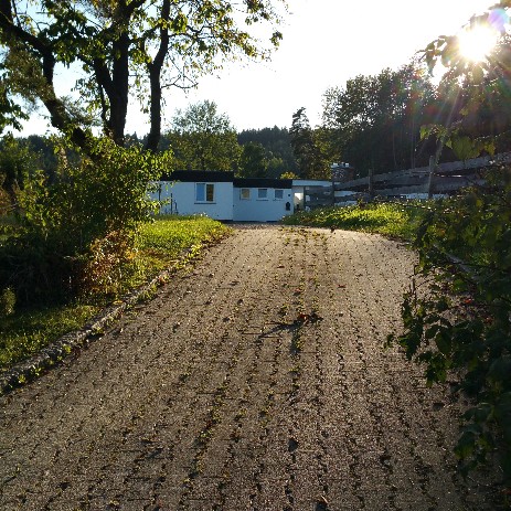 Vor dem Haus, ist eine große geschotterte Terrasse und ein direkter Zugang zu allen Wiesen! Im Haus befinden sich feste Toiletten und Duschen. Ebenso wird ab 2017 eine Dusche und Toilette im Stallgebäude sein.